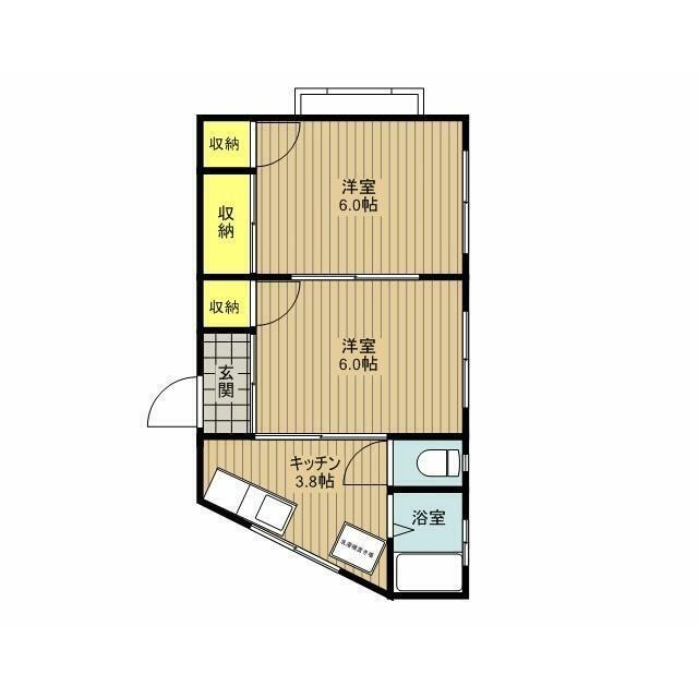 | 間取り | 2DK(DK4 和6 洋6) | 主要採光面 | 南東 |