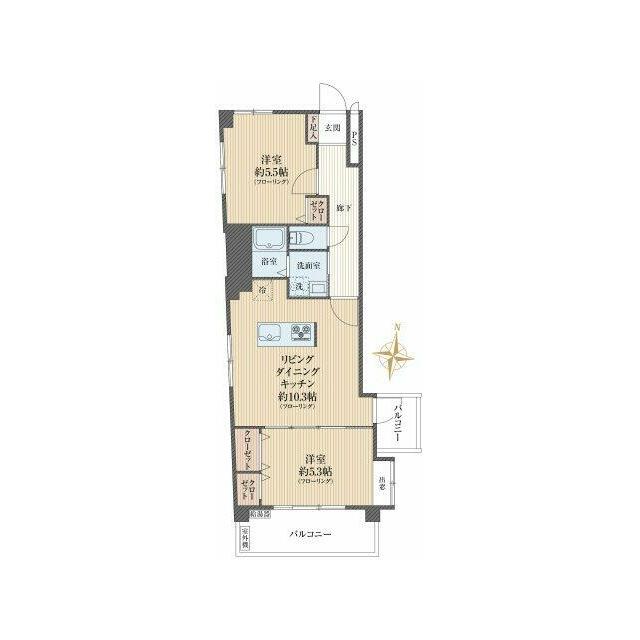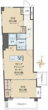| 間取り(内訳) | 2LDK(LDK10.3、洋5.5、5.3) | ||